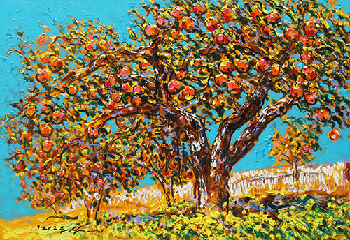 감나무, 45.5×45.5㎝, Oil on canvas, 2017, 이상열