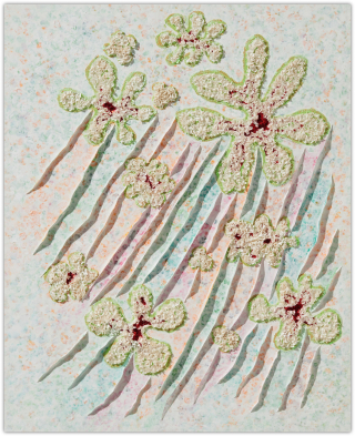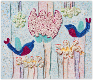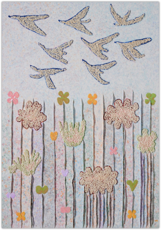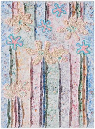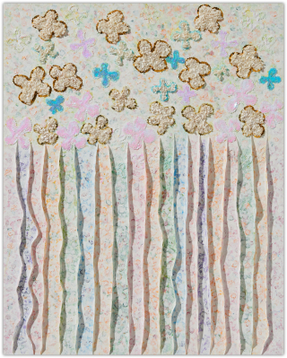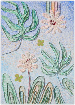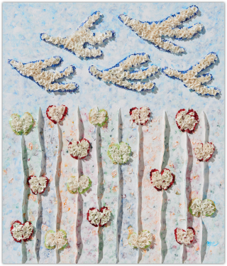 작가는 과거와 현재, 미래가 뒤섞인 유희의 시간을 파스텔 색조로 채색하며, 그 위에 물감을 입체적으로 쌓아 올려 손에 잡힐 듯 생생한 꿈의 조각들을 만들어냅니다.