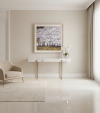 안기호 작가는 향연시리즈를 중심으로, 풍경과 인물이 어우러진 깊은 감성의 예술세계를 보여준다. 화면을 가득 채운 나무와 산, 그 속에 녹아든 인물들은 서로 경계 없이 어우러지는데, 이는 만물이 하나의 거대한 생명 에너지로 연결되어 있다는 동양적 사유와 인문학적 서정성을 동시에 보여주고 있다. 작가의 작품은 현대적인 공간에 '인간적인 온기'를 더해주는데, 자극적인 화려함 대신, 은은하게 퍼지는 흙의 색조와 깊이있는 질감은 공간의 공기를 차분하게 정돈한다.