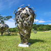 강신영 작가는 스테인리스 스틸을 주재료로 사용, 자연과 생명의 유기적인 구조를 조형화하여 '따뜻한 사람의 내음'을 전달하는 독창적인 조각가이다. 작가는 나뭇잎, 물고기, 새 등 자연 현상에서 모티브를 얻어, 모든 사물이 유기적으로 연결되어 있다는 전일적(全一的) 세계관을 투영한다. 작가는 강판을 불에 달구어 망치로 두드리는 전통적인 방식을 고수하며, 이 수작업 과정은 금속에 무늬를 새기며, 재료의 물성을 확장하여 감성과 울림을 지닌 생성 공간을 조성한다