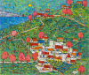 행복 가득한 감성을 전하는 김경이 작가. 작가의 모든 그림에는 희망과 용기를 뜻하는 태양을 그려 넣었으며, 감성을 가득 채우고 싶었던지 작가는 질퍽한 덧칠 기법으로 깊은 감흥을 주었으며, 정겨운 마을과 뒷동산의 모습은 정감어린 어린시절을 느끼게 합니다. “마을을 그려도 따뜻하게 그리고 싶어요. 제 그림에는 늘 미루나무가 등장하는데요. 어렸을 때 제가 그 나무 아래서 소망을 키웠기 때문에 제 그림을 보시는 분들도 희망을 느끼길 바래요.”