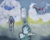 작가는 시간과 공간의 경계를 넘나드는 몽환적이고 초현실적인 분위기를 보여줍니다. 물고기가 하늘을 날고 꽃이 물속에 있는 등의 이미지를 캔버스에 담아내어 독창적인 상상의 세계를 펼치는데, 꿈과 같은 풍경을 상상하게 합니다. 면에 색을 쌓아 올리거나 사포로 표면을 갈아내는 등 독창적인 기법을 사용하여 생생한 질감과 은은한 분위기를 연출하며, 단순히 아름다운 풍경을 넘어, 인간의 삶과 존재에 대한 근원적인 질문을 던지며 감상자에게 사유의 시간을 제공합니다.