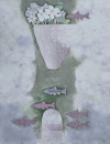 작가는 시간과 공간의 경계를 넘나드는 몽환적이고 초현실적인 분위기를 보여줍니다. 물고기가 하늘을 날고 꽃이 물속에 있는 등의 이미지를 캔버스에 담아내어 독창적인 상상의 세계를 펼치는데, 꿈과 같은 풍경을 상상하게 합니다. 면에 색을 쌓아 올리거나 사포로 표면을 갈아내는 등 독창적인 기법을 사용하여 생생한 질감과 은은한 분위기를 연출하며, 단순히 아름다운 풍경을 넘어, 인간의 삶과 존재에 대한 근원적인 질문을 던지며 감상자에게 사유의 시간을 제공합니다.
