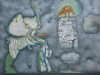 작가는 시간과 공간의 경계를 넘나드는 몽환적이고 초현실적인 분위기를 보여줍니다. 물고기가 하늘을 날고 꽃이 물속에 있는 등의 이미지를 캔버스에 담아내어 독창적인 상상의 세계를 펼치는데, 꿈과 같은 풍경을 상상하게 합니다. 면에 색을 쌓아 올리거나 사포로 표면을 갈아내는 등 독창적인 기법을 사용하여 생생한 질감과 은은한 분위기를 연출하며, 단순히 아름다운 풍경을 넘어, 인간의 삶과 존재에 대한 근원적인 질문을 던지며 감상자에게 사유의 시간을 제공합니다.