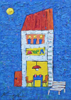 행복 가득한 감성을 전하는 김경이 작가. 작가의 모든 그림에는 희망과 용기를 뜻하는 태양을 그려 넣었으며, 감성을 가득 채우고 싶었던지 작가는 질퍽한 덧칠 기법으로 깊은 감흥을 주었으며, 정겨운 마을과 뒷동산의 모습은 정감어린 어린시절을 느끼게 합니다. “마을을 그려도 따뜻하게 그리고 싶어요. 제 그림에는 늘 미루나무가 등장하는데요. 어렸을 때 제가 그 나무 아래서 소망을 키웠기 때문에 제 그림을 보시는 분들도 희망을 느끼길 바래요.”