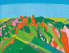 '흐르는 산'을 그리는 김윤숙 작가는 눈에 보여지기 위한 것이 아닌 내면의 세계를 표출해내며 산의 포근함과 신비로움을 화폭에 담아내고 있다. 작품은 단순화되거나 다양한 색채와 압축된 이미지로 변형, 재해석하고 있다. 물감에 돌가루가 섞여 중첩되고 두터워지는 것은 산에 대한 즐거움과 반가움, 경외하는 마음이 녹아 들어가는 과정이다. '거대하고 위대한 자연. 언제든 가기만 하면 품어주고 위로해주며 멀리서도 항상 손짓하는 산. 나에게는 영원한 예술의 화두다.
