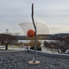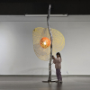 강신영 작가는 스테인리스 스틸을 주재료로 사용, 자연과 생명의 유기적인 구조를 조형화하여 '따뜻한 사람의 내음'을 전달하는 독창적인 조각가이다. 작가는 나뭇잎, 물고기, 새 등 자연 현상에서 모티브를 얻어, 모든 사물이 유기적으로 연결되어 있다는 전일적(全一的) 세계관을 투영한다. 작가는 강판을 불에 달구어 망치로 두드리는 전통적인 방식을 고수하며, 이 수작업 과정은 금속에 무늬를 새기며, 재료의 물성을 확장하여 감성과 울림을 지닌 생성 공간을 조성한다
