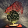 강신영 작가는 스테인리스 스틸을 주재료로 사용, 자연과 생명의 유기적인 구조를 조형화하여 '따뜻한 사람의 내음'을 전달하는 독창적인 조각가이다. 작가는 나뭇잎, 물고기, 새 등 자연 현상에서 모티브를 얻어, 모든 사물이 유기적으로 연결되어 있다는 전일적(全一的) 세계관을 투영한다. 작가는 강판을 불에 달구어 망치로 두드리는 전통적인 방식을 고수하며, 이 수작업 과정은 금속에 무늬를 새기며, 재료의 물성을 확장하여 감성과 울림을 지닌 생성 공간을 조성한다