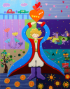 임정아 작가는 행복과 길상의 메시지를 전하는데, 언뜻 상반되어 보이는 두 가지로 요약됩니다. 첫째, 대중에게 가장 사랑받는 <어린 왕자> 시리즈. 생동감 있는 색채와 단순화, 동화적 감수성이 돋보이는 팝아트적 화풍으로 작업합니다. 순수한 어린 왕자와 장미, 별 등 모티브는 현대인에게 순수한 꿈과 희망, 관계의 소중함을 유쾌하게 전달합니다. 둘째, 한국적 정서의 <장락무극(長樂無極)> 시리즈. 행복을 기원하는 길상적 의미 있으며, 현대적으로 재해석합니다.