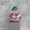 작가는 삶의 여정을 무중력의 행복감이 느껴지도록 푹신한 쿠션, 풍만한 하트, 소파 등 인생의 무게를 완충하는 사물을 통해 표현합니다. 작품을 이룬 금속재질은 심상의 필터로 보면 부유하는 버블처럼 작품에 손을 대면 두둥실 떠오를 것 같아 꿈결을 유영하는 힐링을, 어부바 하듯 서로를 지탱하는 형상은 심리적 위안을 줍니다. 쿠션중앙에 생긴 주름으로 인해 쿠션에서 입술, 꽃잎, 포춘 쿠키 등 다양한 연상으로 뻗어갑니다.