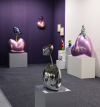 작가는 삶의 여정을 무중력의 행복감이 느껴지도록 푹신한 쿠션, 풍만한 하트, 소파 등 인생의 무게를 완충하는 사물을 통해 표현합니다. 작품을 이룬 금속재질은 심상의 필터로 보면 부유하는 버블처럼 작품에 손을 대면 두둥실 떠오를 것 같아 꿈결을 유영하는 힐링을, 어부바 하듯 서로를 지탱하는 형상은 심리적 위안을 줍니다. 쿠션중앙에 생긴 주름으로 인해 쿠션에서 입술, 꽃잎, 포춘 쿠키 등 다양한 연상으로 뻗어갑니다.
