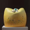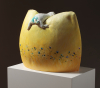 작가는 삶의 여정을 무중력의 행복감이 느껴지도록 푹신한 쿠션, 풍만한 하트, 소파 등 인생의 무게를 완충하는 사물을 통해 표현합니다. 작품을 이룬 금속재질은 심상의 필터로 보면 부유하는 버블처럼 작품에 손을 대면 두둥실 떠오를 것 같아 꿈결을 유영하는 힐링을, 어부바 하듯 서로를 지탱하는 형상은 심리적 위안을 줍니다. 쿠션중앙에 생긴 주름으로 인해 쿠션에서 입술, 꽃잎, 포춘 쿠키 등 다양한 연상으로 뻗어갑니다.