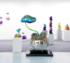 작가는 삶의 여정을 무중력의 행복감이 느껴지도록 푹신한 쿠션, 풍만한 하트, 소파 등 인생의 무게를 완충하는 사물을 통해 표현합니다. 작품을 이룬 금속재질은 심상의 필터로 보면 부유하는 버블처럼 작품에 손을 대면 두둥실 떠오를 것 같아 꿈결을 유영하는 힐링을, 어부바 하듯 서로를 지탱하는 형상은 심리적 위안을 줍니다. 쿠션중앙에 생긴 주름으로 인해 쿠션에서 입술, 꽃잎, 포춘 쿠키 등 다양한 연상으로 뻗어갑니다.