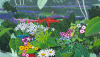 작가는 자연 속에서 행복하고 낭만적인 순간을 그립니다. 현란한 색채와 다양한 형상의 꽃과 풀들은 간추려진 모양으로 기호화되어 있습니다. 또한 배경 안에 젊은 남녀가 등장하여 청춘의 사랑과 동경, 낭만적인 때를 보여주며 관람자들에게 홀연 그 시절로 회귀시킵니다. 이 목가적 내음이 물씬거리는 장면들을 통해 작가는 가장 행복한 순간을 상상하며 스스로를 위안하고 감상자와 공유하고자 합니다.
