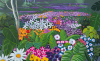 작가는 자연 속에서 행복하고 낭만적인 순간을 그립니다. 현란한 색채와 다양한 형상의 꽃과 풀들은 간추려진 모양으로 기호화되어 있습니다. 또한 배경 안에 젊은 남녀가 등장하여 청춘의 사랑과 동경, 낭만적인 때를 보여주며 관람자들에게 홀연 그 시절로 회귀시킵니다. 이 목가적 내음이 물씬거리는 장면들을 통해 작가는 가장 행복한 순간을 상상하며 스스로를 위안하고 감상자와 공유하고자 합니다.