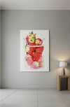 현대인이 추구하는 '달콤한 욕망'을 은유한 김호성 작가의 딸기. 닿는 순간 사라질 것 같은 찰나의 미학을 가장 화려한 색채로 고정해 둠으로써, 인간의 본질적인 갈증과 유혹을 드라마틱하게 보여줍니다. '딸기'는 즉각적인 생기와 활력을 불어넣으며, 붉은색의 심리적 고양감은 보는 이에게 긍정적 에너지를 느끼게 합니다. 정교한 붓질은 기계가 흉내낼 수 없는 화가의 영혼을 담고 있으며, 디지털시대 잃어버린 아날로그적 진정성과 장인 정신에 대한 회귀를 의미합니다.