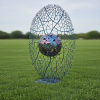 강신영 작가는 스테인리스 스틸을 주재료로 사용, 자연과 생명의 유기적인 구조를 조형화하여 '따뜻한 사람의 내음'을 전달하는 독창적인 조각가이다. 작가는 나뭇잎, 물고기, 새 등 자연 현상에서 모티브를 얻어, 모든 사물이 유기적으로 연결되어 있다는 전일적(全一的) 세계관을 투영한다. 작가는 강판을 불에 달구어 망치로 두드리는 전통적인 방식을 고수하며, 이 수작업 과정은 금속에 무늬를 새기며, 재료의 물성을 확장하여 감성과 울림을 지닌 생성 공간을 조성한다