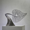 강신영 작가는 스테인리스 스틸을 주재료로 사용, 자연과 생명의 유기적인 구조를 조형화하여 '따뜻한 사람의 내음'을 전달하는 독창적인 조각가이다. 작가는 나뭇잎, 물고기, 새 등 자연 현상에서 모티브를 얻어, 모든 사물이 유기적으로 연결되어 있다는 전일적(全一的) 세계관을 투영한다. 작가는 강판을 불에 달구어 망치로 두드리는 전통적인 방식을 고수하며, 이 수작업 과정은 금속에 무늬를 새기며, 재료의 물성을 확장하여 감성과 울림을 지닌 생성 공간을 조성한다